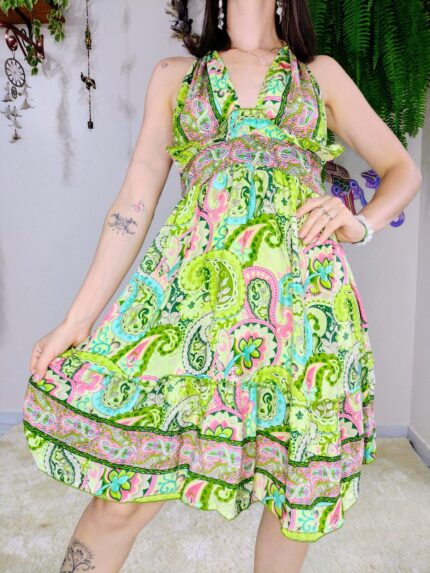 Vestido curto indiano, que pode ser usada com bata, tamanho único.