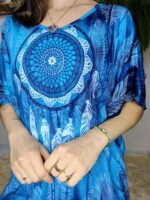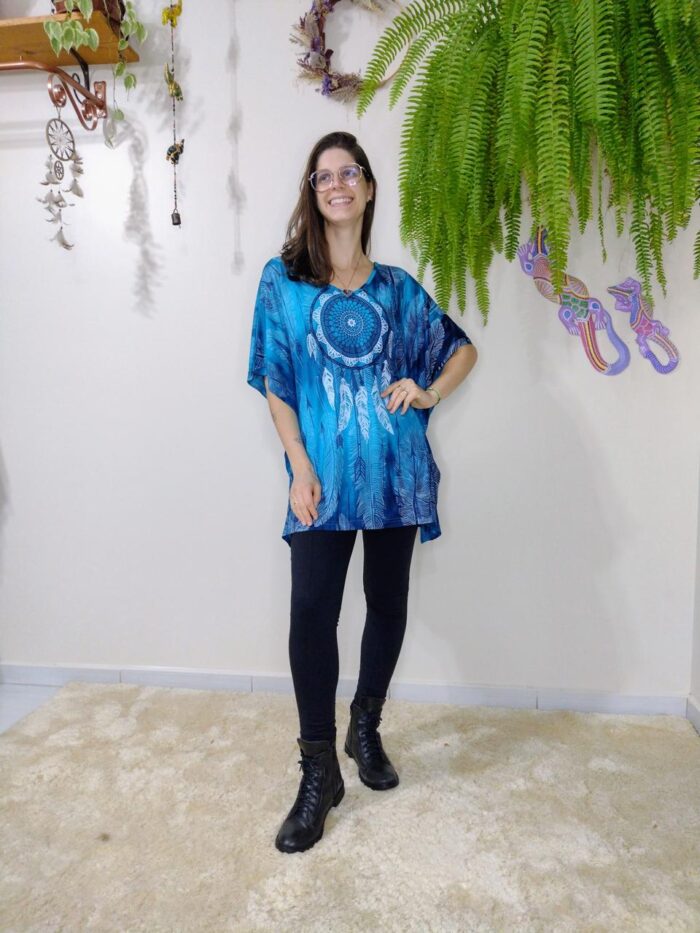 A bata indiana em tecido viscose é uma peça leve, macia e confortável, ideal para uso prolongado em dias quentes por sua respirabilidade e toque suave. Apresenta um caimento fluido que valoriza o corpo com elegância, sem o peso do tecido pesado