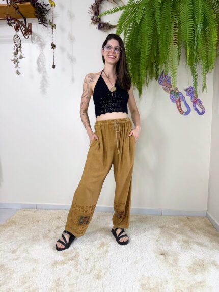 Aposte na criatividade e abrace o Estilo Boho Chic com a nossa Calça Pantalona de Algodão! Adquira já a sua e transforme seu visual com um toque único e confortável.