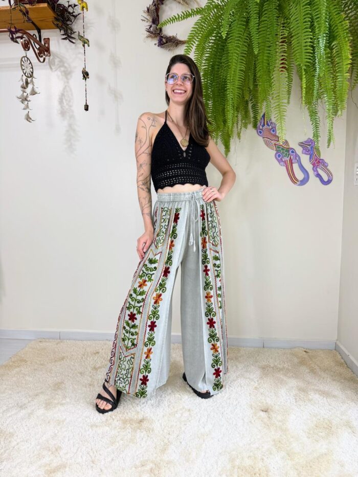 Aposte na criatividade e abrace o Estilo Boho Chic com a nossa Calça Estonada indiana! Adquira já a sua e transforme seu visual com um toque único e confortável.