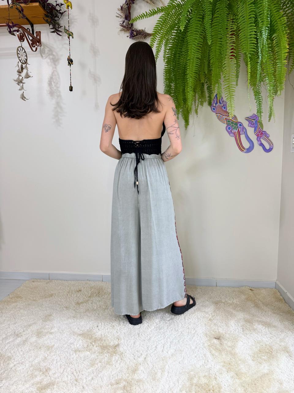 Descubra a combinação perfeita de cor, conforto e estilo com a Calça Pantalona de Viscose, essa calça é ideal para quem adora o estilo Boho, oferecendo um toque de autenticidade ao seu visual.