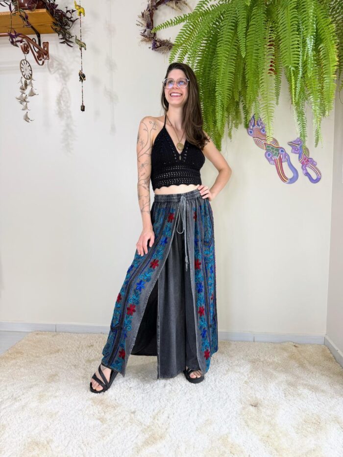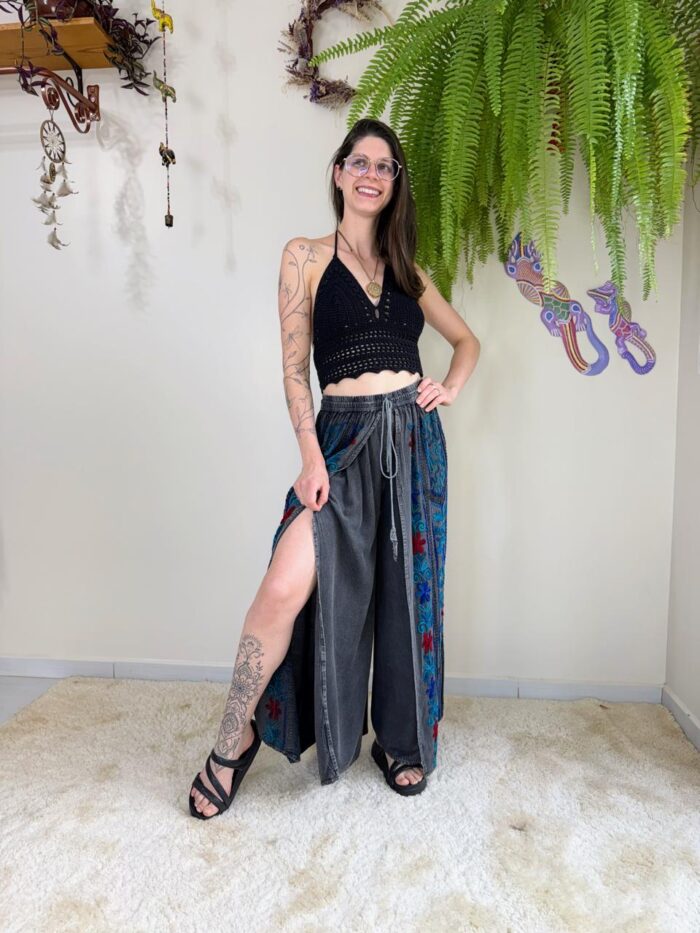 Aposte na criatividade e abrace o Estilo Boho Chic com a nossa Calça Estonada indiana! Adquira já a sua e transforme seu visual com um toque único e confortável.