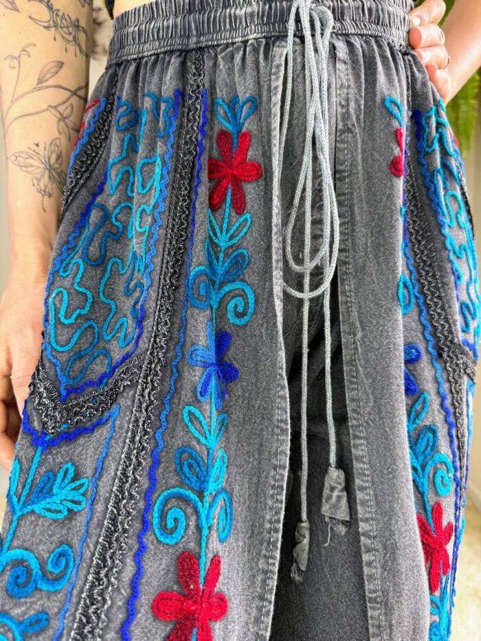 SKU: Não aplicável Categoria: Calças Tags: bordadas, calças, estonadas, indiana