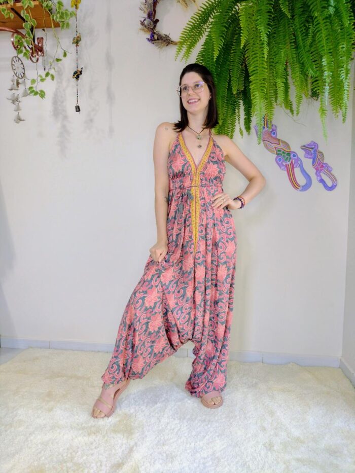 Dica: Este macacão é ideal para ocasiões que pedem um toque de estilo e conforto, com a leveza do tecido de poliéster e o charme único do design indiano. Combine com acessórios autênticos para um look completo e do seu jeitinho!