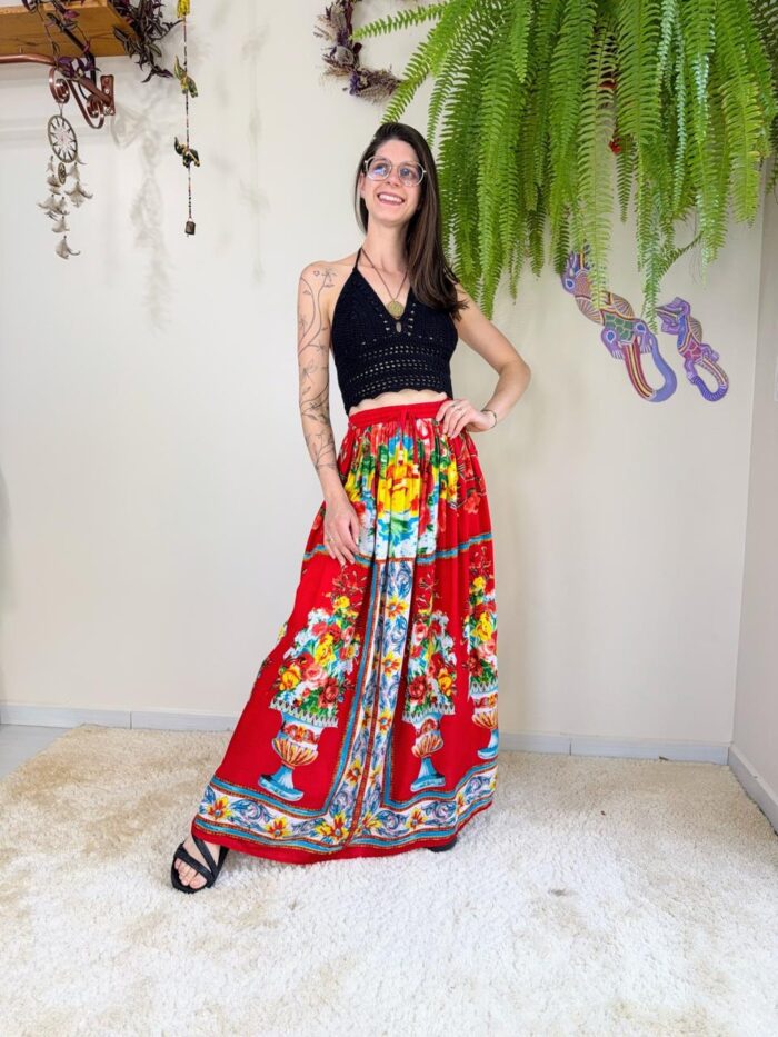 Dica: Essa saia é ideal para ocasiões que pedem um toque de estilo e conforto, com a leveza do tecido de poliéster e o charme único do design indiano. Combine com acessórios autênticos para um look completo e do seu jeitinho!