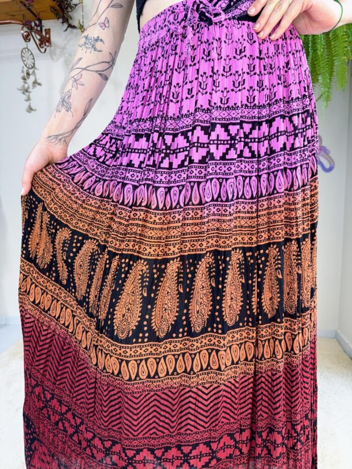 Dica: Essa saia é ideal para ocasiões que pedem um toque de estilo e conforto, com a leveza do tecido de poliéster e o charme único do design indiano. Combine com acessórios autênticos para um look completo e do seu jeitinho!