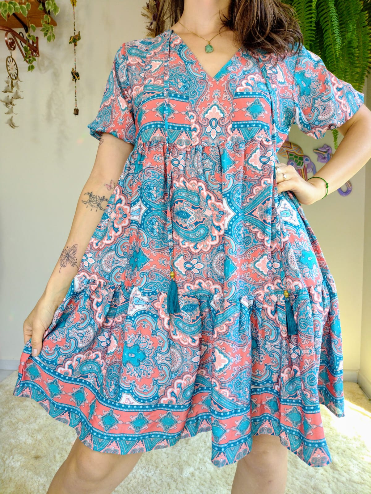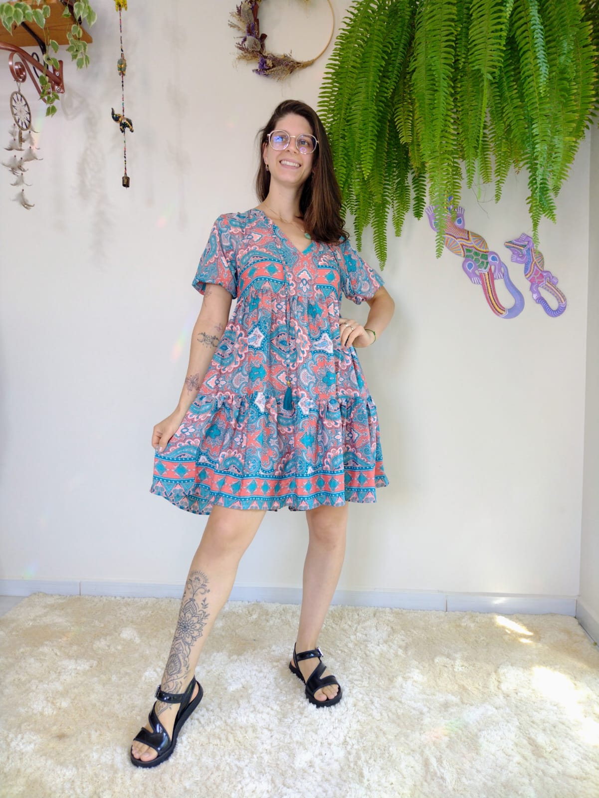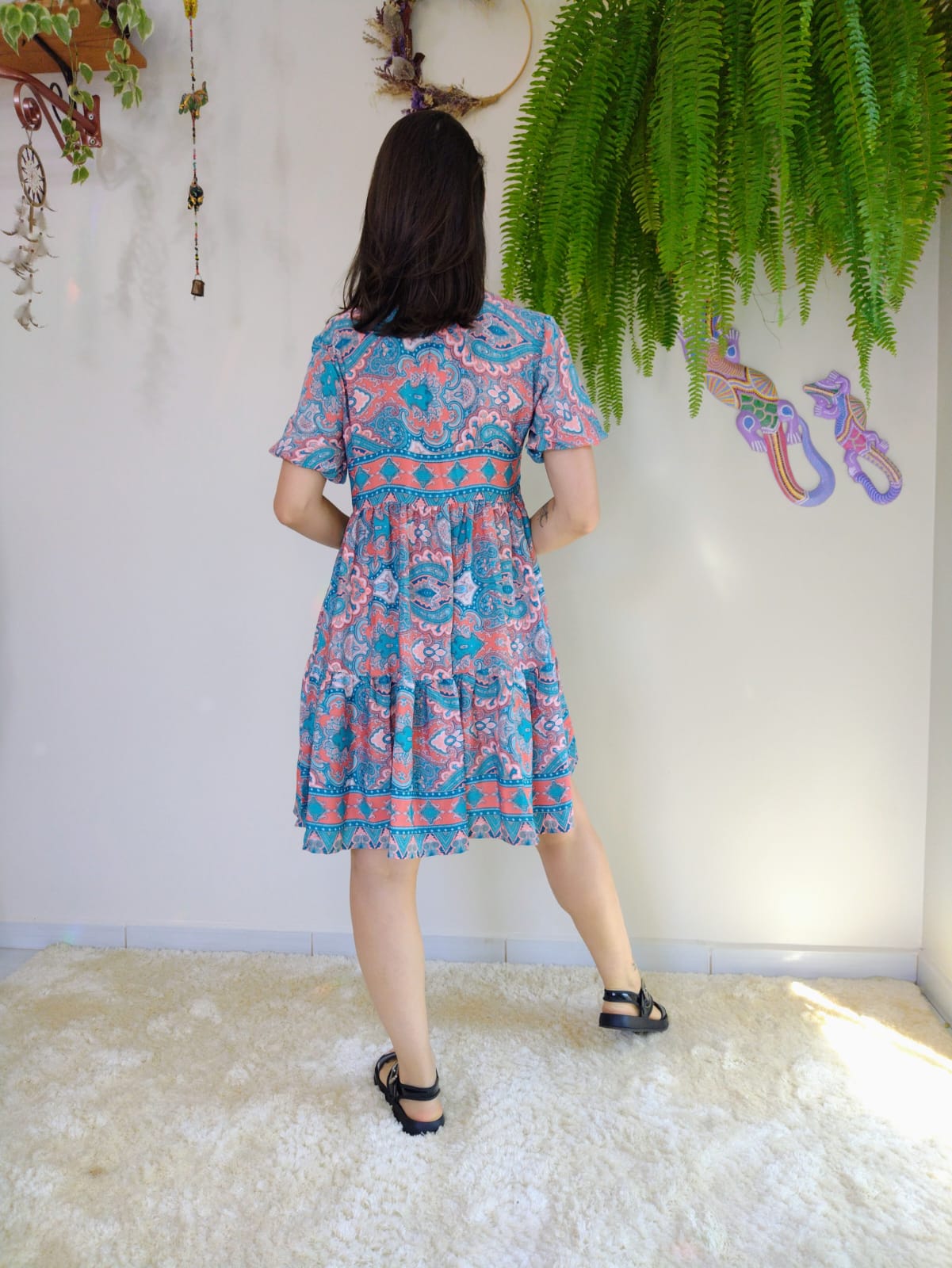 Dica: Este vestido é ideal para ocasiões que pedem um toque de estilo e conforto, com a leveza do tecido de poliéster e o charme único do design indiano. Combine com acessórios autênticos para um look completo e do seu jeitinho!