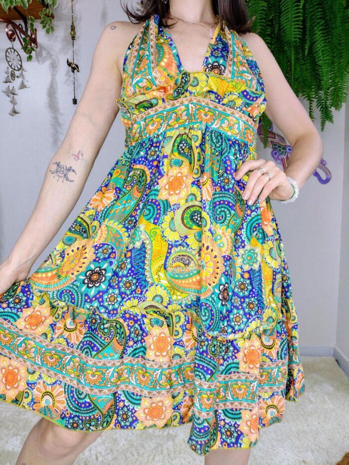 Dica: Este vestido é ideal para ocasiões que pedem um toque de estilo e conforto, com a leveza do tecido de poliéster e o charme único do design indiano. Combine com acessórios autênticos para um look completo e do seu jeitinho!